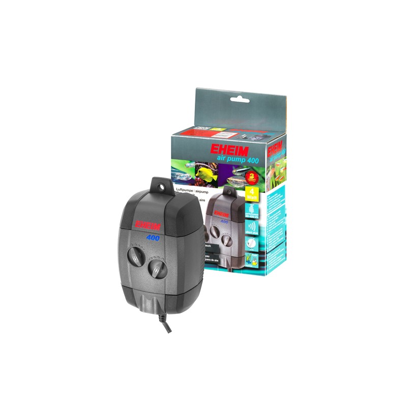 Existen 3 modelos con un rendimiento de la bomba de 100, 200 (2x 100) y 400 (2x 200) l/h. El modelo más pequeño viene con una y los dos modelos mayores respectivamente con dos salidas de aire individualmente regulables. De acuerdo con eso, se suminstran uno o dos difusores EHEIM y ahora nuevo válvulas antirretorno dentro del embalaje. La cantidad de aire por salida se puede regular directamente en el aparato y adicionalmente en cada difusor. Así cada uno puede adaptar la salida de aire y el tamaño de burbujas a su gusto y necesidad.