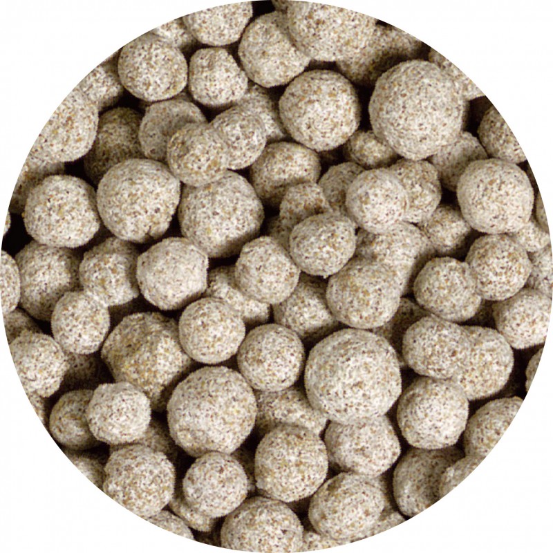 SUBSTRATpro consiste en cuarzo sinterizado de forma esférica que permite una alta densidad de llenado. Así el volumen dentro del filtro (de la cesta o del recipiente filtrante) se aprovecha al máximo. La optimizada superficie de las bolitas permite además una colonización intensiva de las importantes bacterias de limpieza. Se forma una densa población de bacterias.