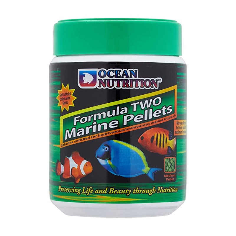 Ingredientes: camarón, plancton, sardina, quelpo, alfalfa, calamar, aceite y huevas de salmón, spirulina, lecitina, grasa de pescado, ajo, caseína, minerales (cloruro de calcio, yoduro del potasio, sulfato ferroso, sulfato del manganeso, sulfato del cinc del carbonato del magnesio), MPAX (extracto amino de la proteína marina: pescados, hydrolysate, aminoácidos selectos (arginine, histidine, isoleucine, leucine, lysine, methionine, cystine, phenylalanine, threonine, tryptophan, y valine)), vitaminas (vitamina C estabilizada, biotin, caroteno beta, cyanocobalamin, niacin, riboflavina, vitamina de la tiamina E), conservantes (ethoxyquin, sorbate de potasio), pigmentos de carotenoides (astaxanthin, canthaxanthin), y glucan beta.