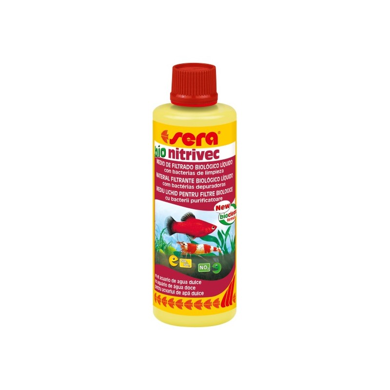 sera bio nitrivec, un producto de la biotecnología de sera, descompone el amonio y el nitrito con sus bacterias de limpieza. El mineral volcánico que contiene elimina las sustancias perjudiciales, aglutina los enturbiamientos de forma eficaz y ofrece superficie de asentamiento a las bacterias de limpieza. En el mineral volcánico están depositados calcio, potasio y magnesio – minerales indispensables, que son continuamente consumidos en el acuario. Para un agua saludable, transparente y biológicamente activa.