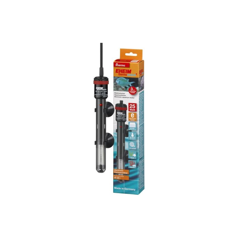 Las ideas obvias muchas veces son las mejores. Como el calentador para acuarios. Simplemente se coloca en el agua y lo calienta. Este principio es el mismo desde hace décadas. Sin embargo hoy, el termocalentador EHEIM es un aparato térmico altamente moderno. La temperatura se puede regular precisamente y a través de la electrónica se mide de forma todavía más exacta y se mantiene más constante. No es necesario reajustar la temperatura. Un revestimiento de cristal especial de laboratorio amplía la superficie de calentamiento, sirve de escudo térmico (el contacto con el termocalentador no afecta a los habitantes del acuario) y garantiza la distribución óptima y homogénea del calor. Y si quiere calentar un acuario desde 20 hasta 1200 litros – usted tiene la elección entre 10 tamaños para conseguirlo.