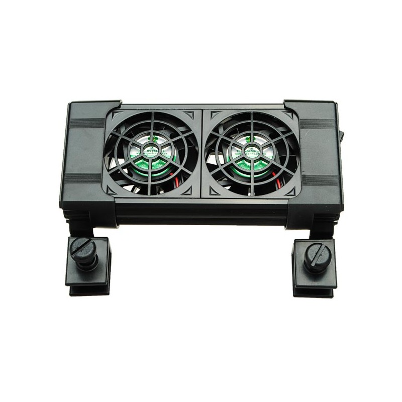 El exceso de temperatura es muy peligroso en los peces tropicales, y aún más en peces de agua fría y peces marinos. Fácil montaje y ajustable al borde del acuario con un brazo articulado. Se debe dejar la tapa abierta a fin de crear una vía de escape del aire caliente. Incluye fuente de alimentación de 12 V/4.